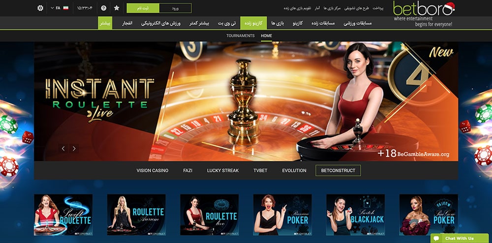 بت برو با ارائه کازینو زنده با دیلرهای فارسیزبان، تجربهای مشابه با کازینوهای واقعی را برای کاربران فراهم کرده است. بازیهایی مانند رولت، بلکجک، باکارات و پوکر با دیلرهای زنده در این بخش ارائه میشوند.