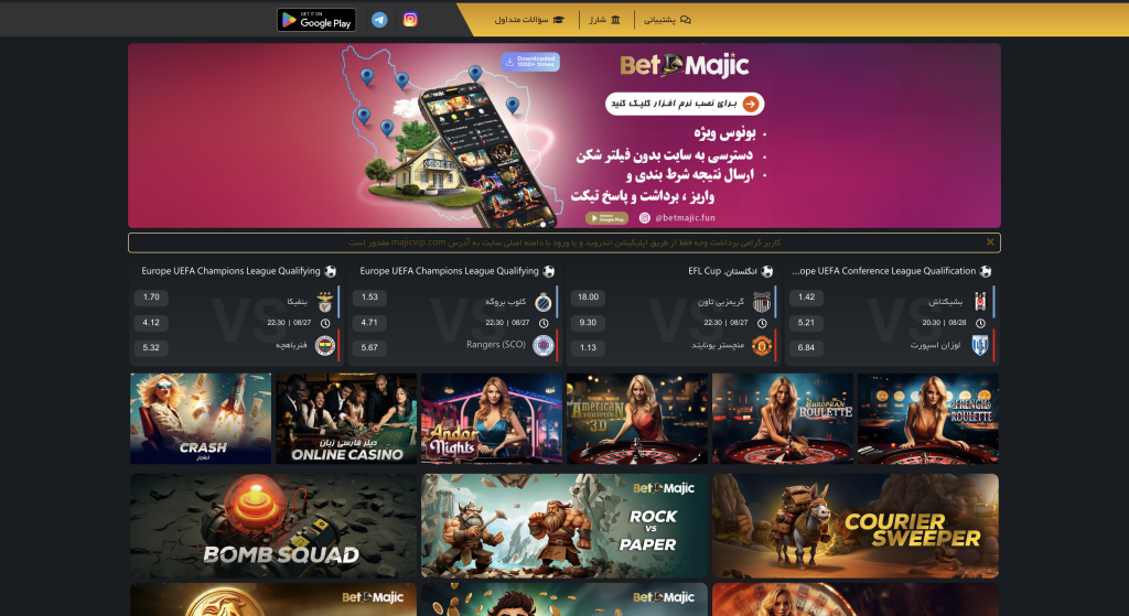 | اپلیکیشن شرط بندی بت مجیک | فقط برای نسخه اندروید |
