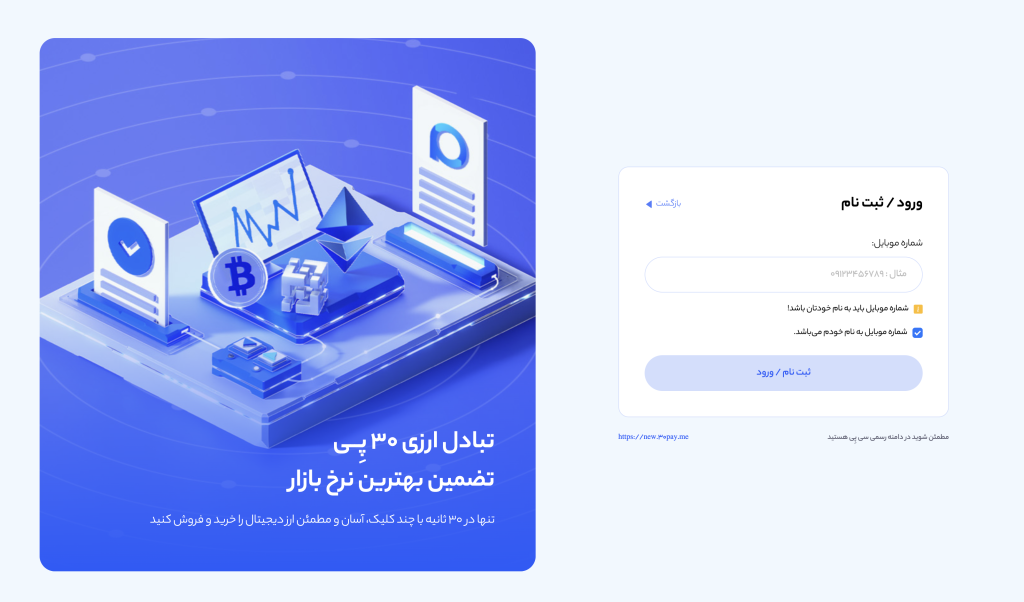 ورود به صرافی ارز دیجیتال ۳۰ پی